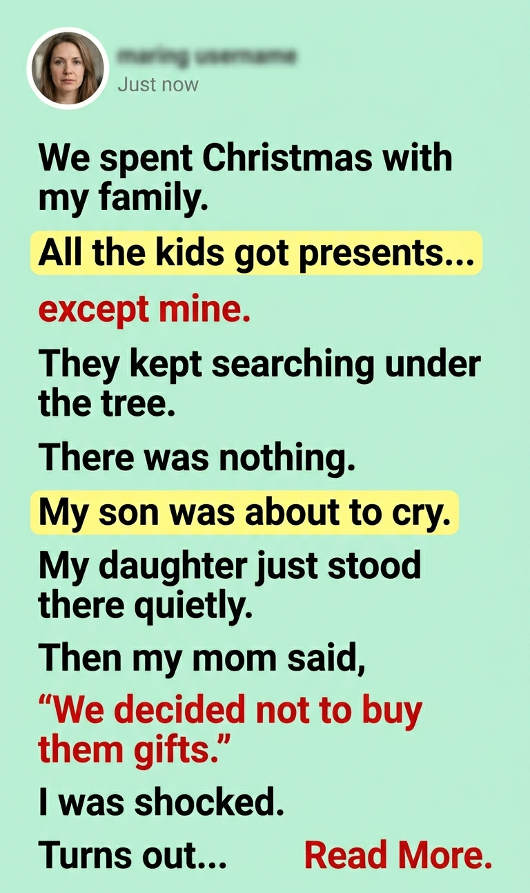 My daughter just stood there quietly, hands empty, watching the other kids open their gifts.