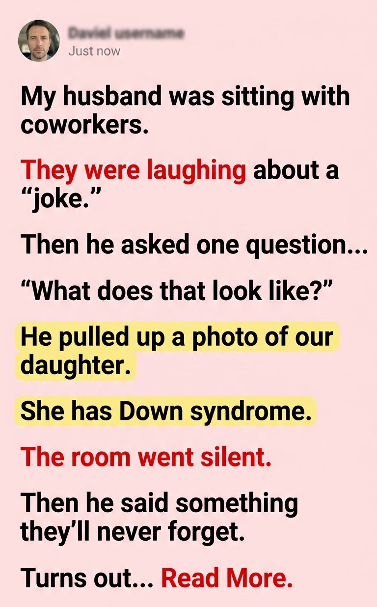 My husband, Dustin, was at work, sitting at a lunch table with about fifteen other guys.