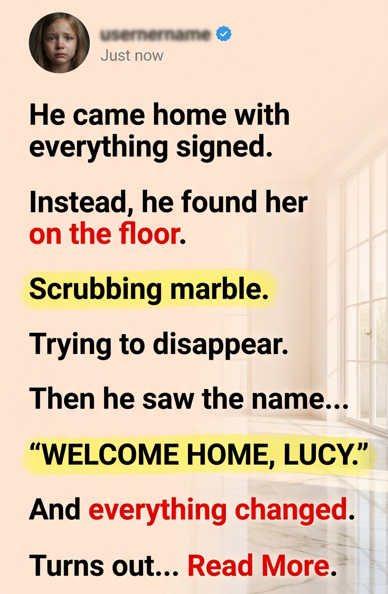 The foyer was too bright for cruelty. White walls. Wet polished floors. Tall arched windows spilling daylight over everything expensive enough to look innocent. But in the middle of all that cold elegance was one small girl in a pale beige dress, kneeling beside a blue plastic bucket, dragging a sponge through a white soapy mess like she had already learned that humiliation goes quieter if you don’t argue.