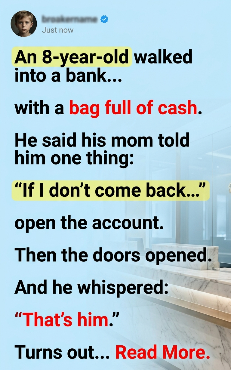 He was just an 8-year-old boy in a simple gray t-shirt, too small for the marble counter, standing alone in a bank full of polished shoes, expensive watches, and people who had long forgotten what desperation looked like.