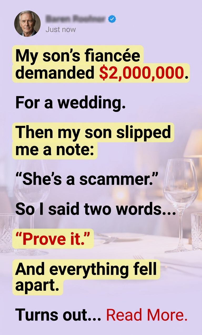 “Prove it,” I repeated calmly. “Prove that this wedding actually costs two million dollars. Show me detailed estimates from real vendors with real company names and tax IDs. Show me signed proposals. Show me contracts.”