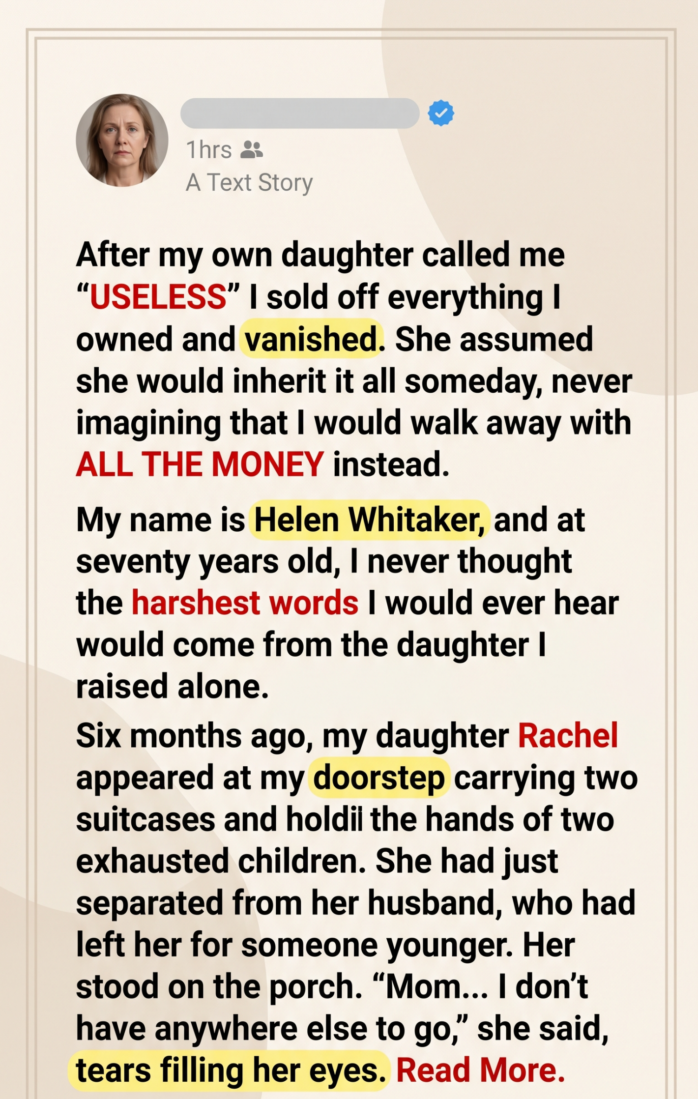 My Daughter Called Me “Useless,” So I Sold Everything, Disappeared, and Left Her Wondering Where Her Inheritance Went