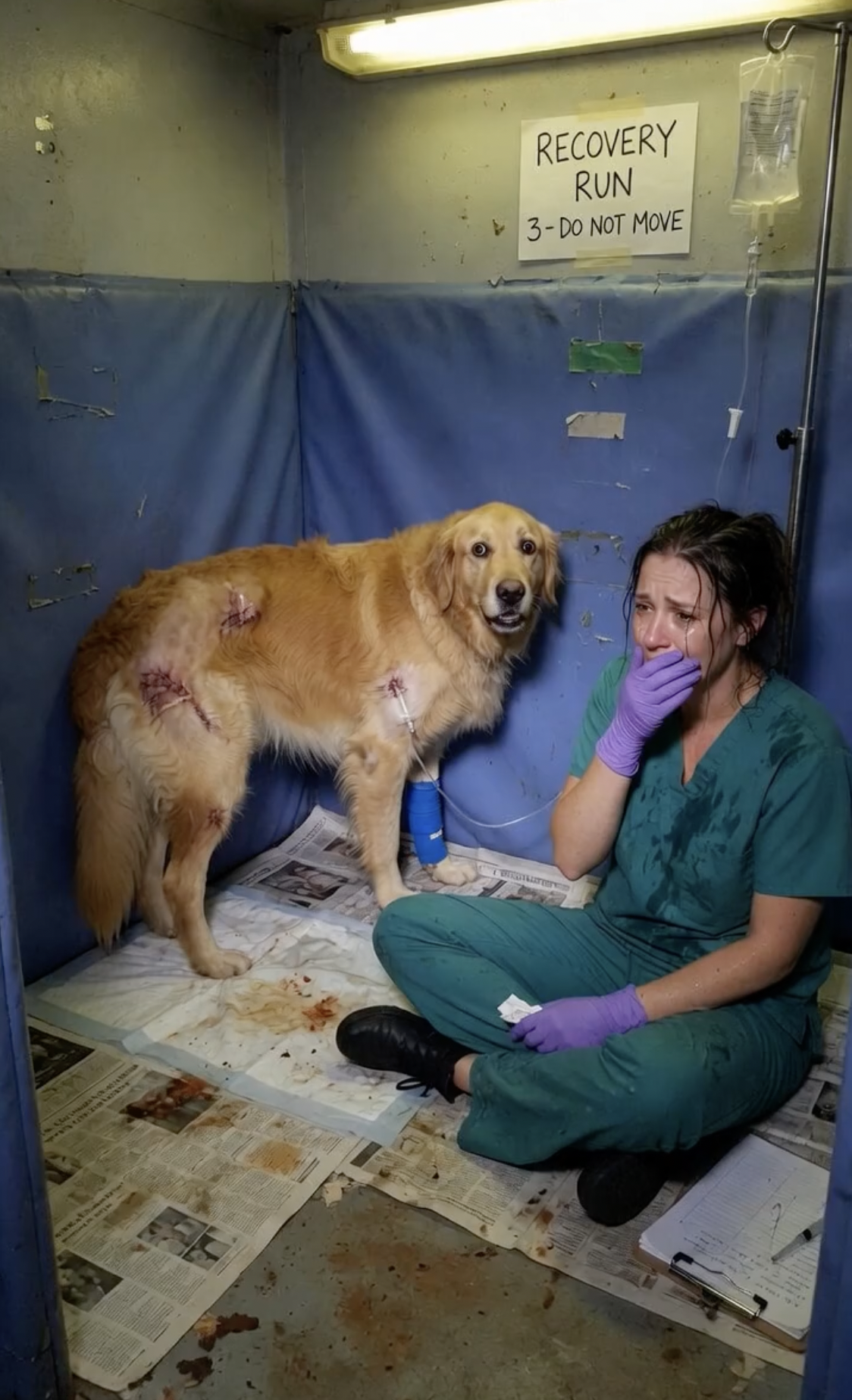 “I know,” she sobbed softly, her voice barely louder than the hum of the fluorescent lights. “I know you tried, my brave, beautiful boy. I saw the door. I saw your paws.”