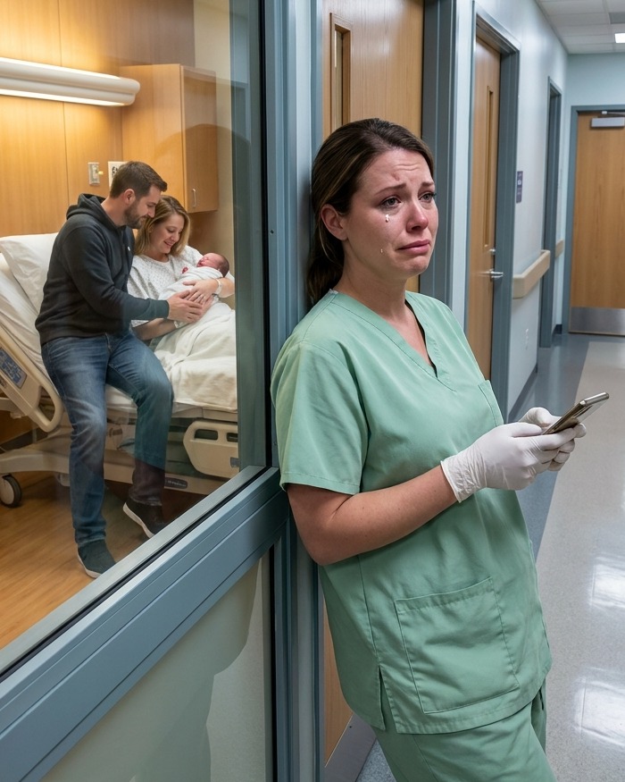 He was standing down the hall—holding a newborn and whispering softly to another woman.