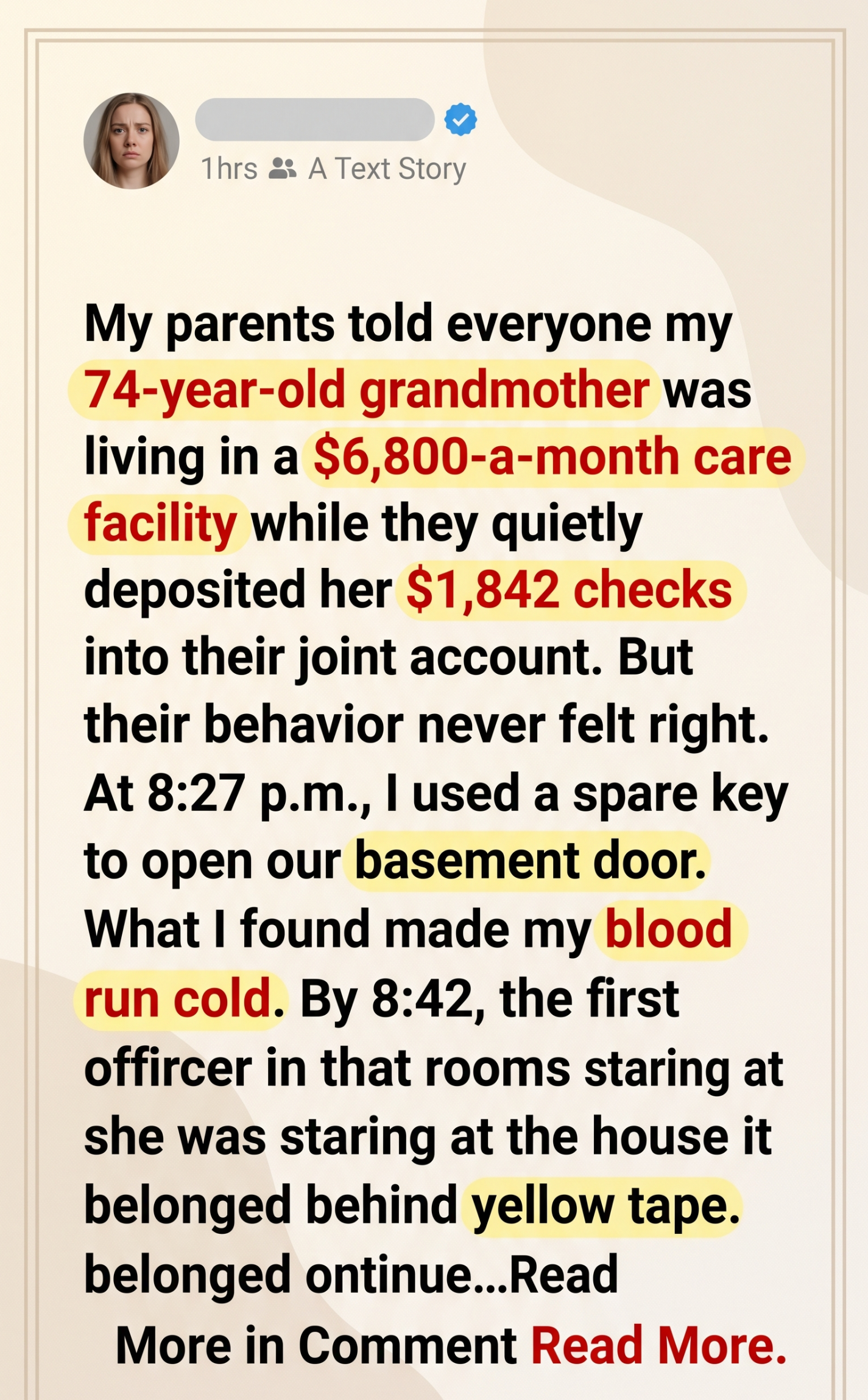 When my parents first announced the care facility, they framed it as a sad necessity. Grandma had supposedly become confused one afternoon, left a burner on, and wandered outside in slippers. According to my mother, neighbors found her at the corner crying and unable to remember her address. My father said it was “the beginning of the decline” and that they had acted quickly before something irreversible happened. The story spread through the family exactly as they intended: urgency, expense, sacrifice, and enough vague medical language to make people feel cruel for asking follow-up questions. A few relatives offered to visit. My mother always had an answer ready. Wrong week. Flu restrictions. Facility policy changes. Grandma resting. Grandma agitated. Grandma having a difficult day. The lies were not elaborate; they were just constant, which is often more effective.
