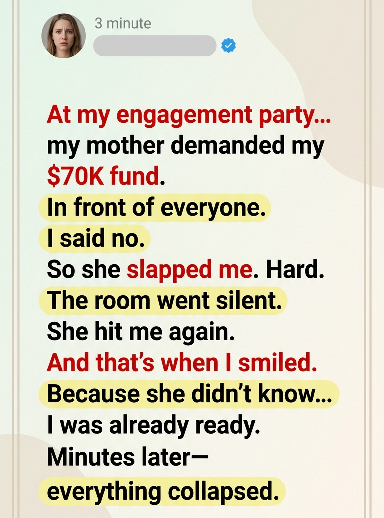 “Natalie,” she said, low enough that only I could hear, “don’t make a scene. You’ll transfer the money tonight. We’ll talk like adults later.”