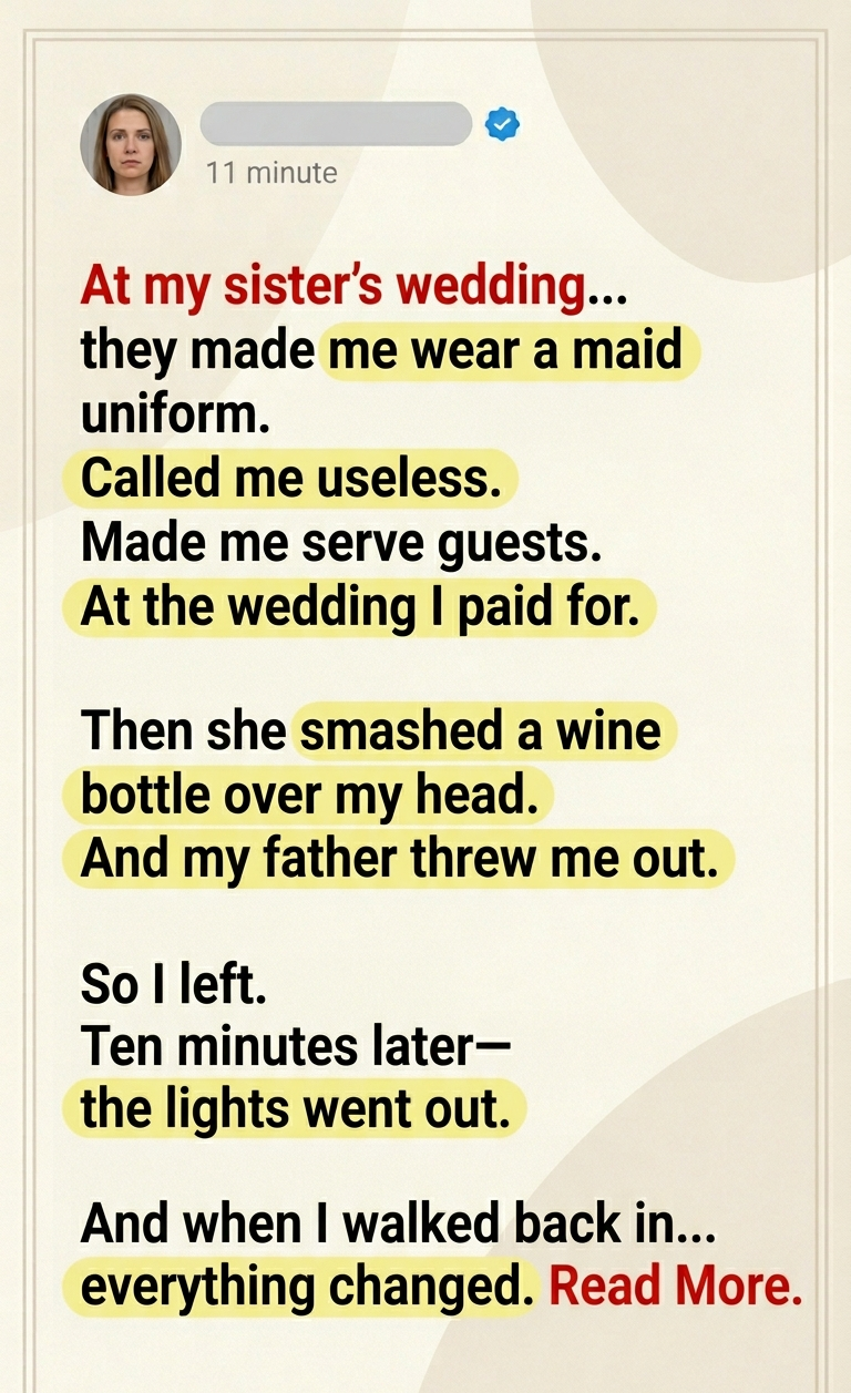 I stood there in a cheap maid’s uniform while my sister called me useless.
