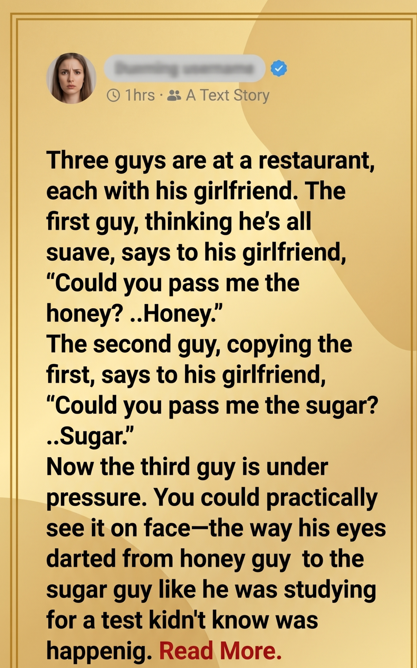 His girlfriend rolled her eyes in a way that still looked affectionate. She slid the honey across the table. “You’re ridiculous,” she said, smiling anyway.