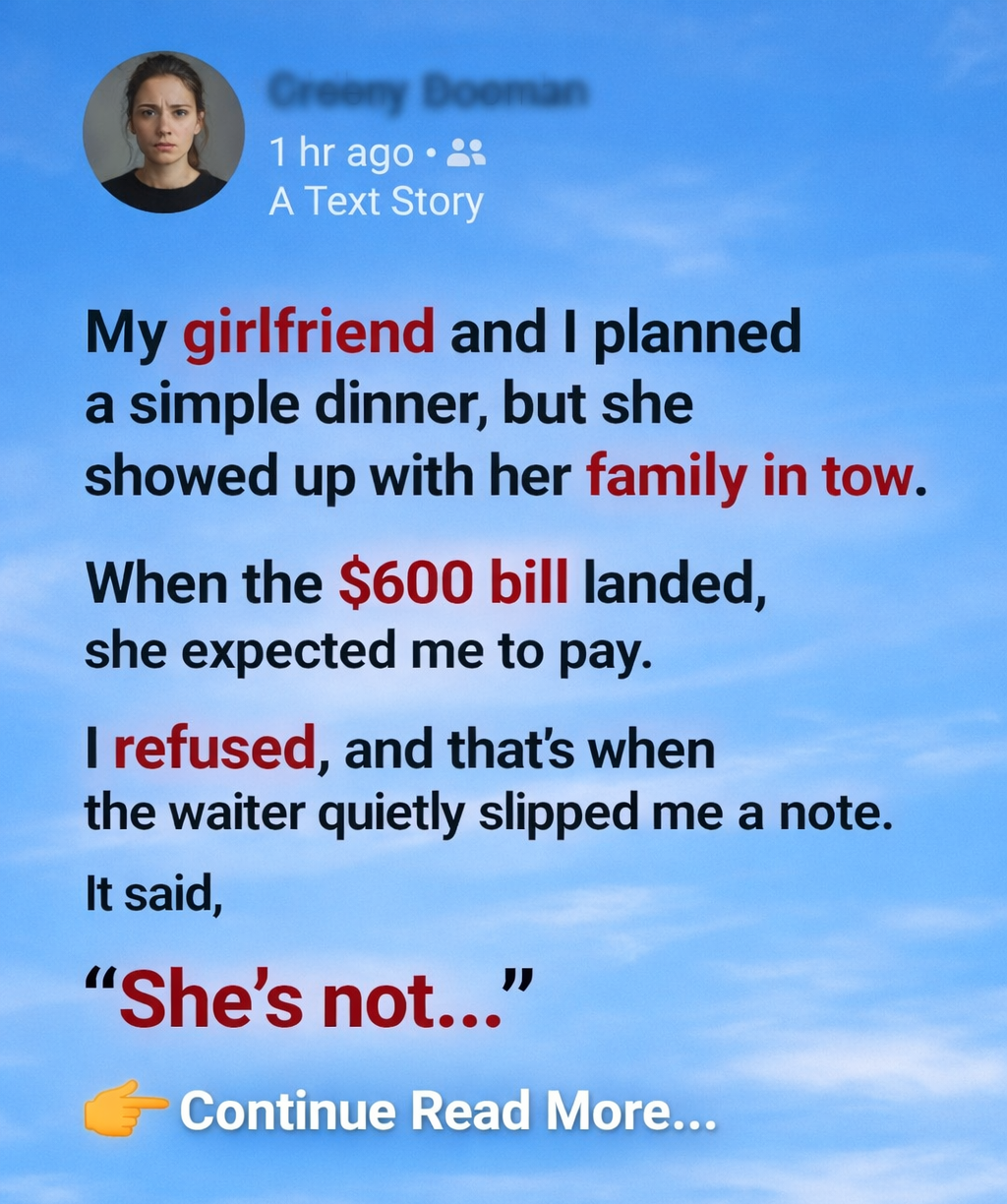 Nothing extravagant. Just a quiet Friday night at a mid-range restaurant downtown. We’d both had long weeks, and I thought it would be a nice chance to unwind, talk, and maybe discuss the next step in our relationship. We’d been together almost a year. I was starting to think about the future.