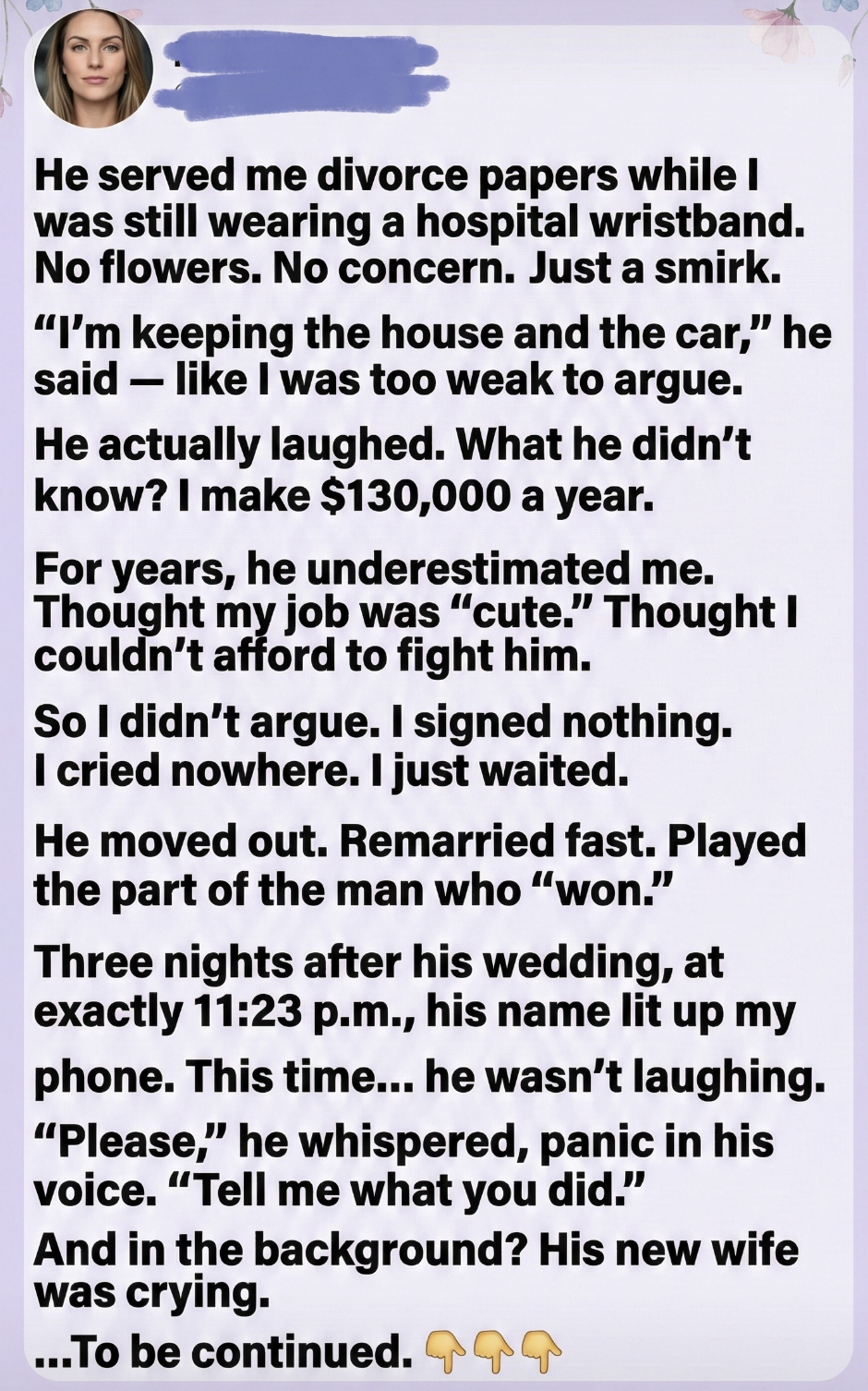 By the time I was discharged, he had already moved out. Weeks later, mutual friends told me he’d remarried — quickly, extravagantly, like he needed a public celebration to prove he’d upgraded.