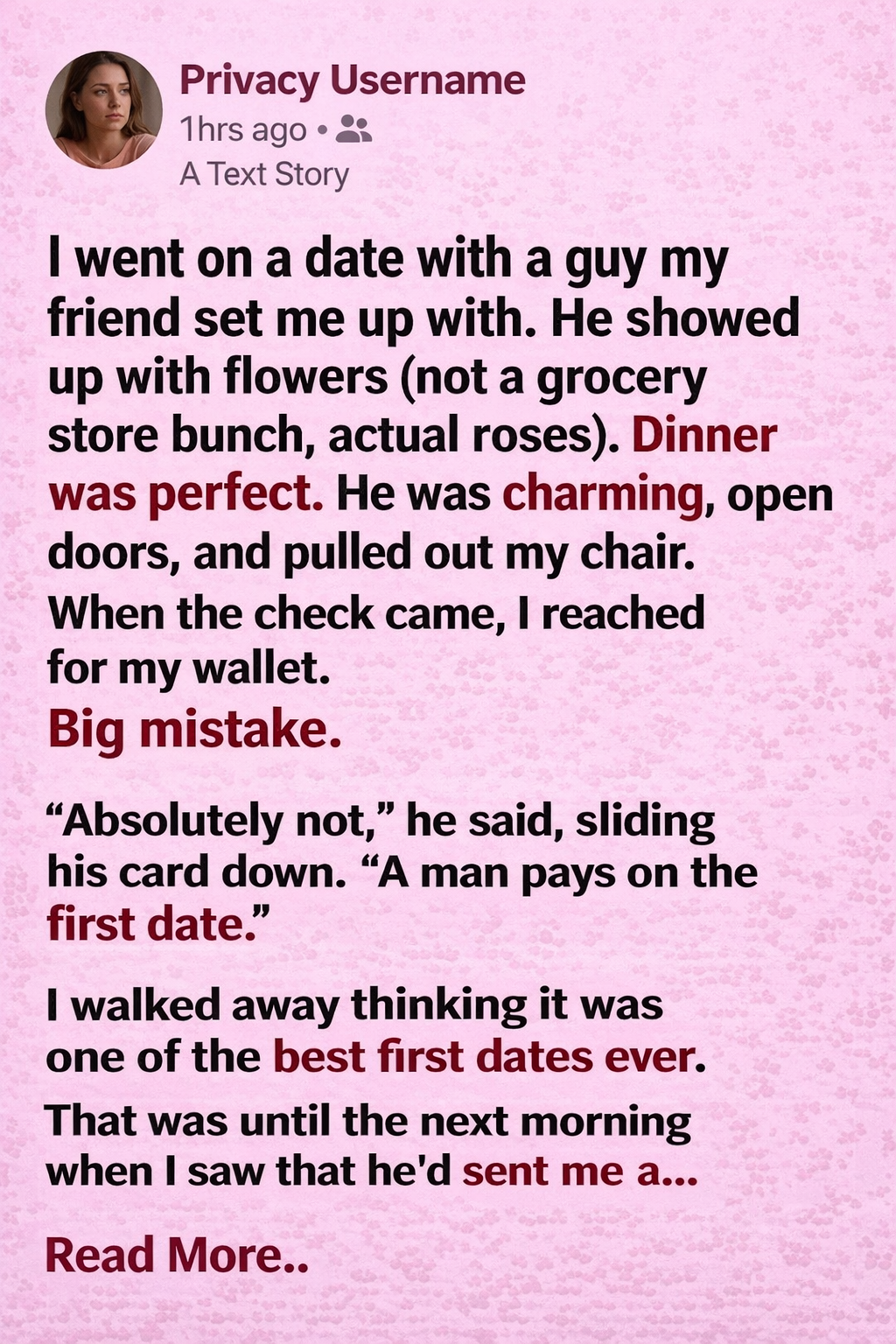 I thought about sending the money just to avoid the awkwardness. But something about the whole thing felt… transactional. Like the flowers, the door-opening, the chair-pulling — all of it was part of some script.