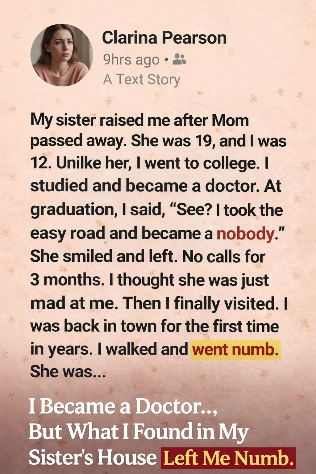 “Your sister passed away about two months ago.”