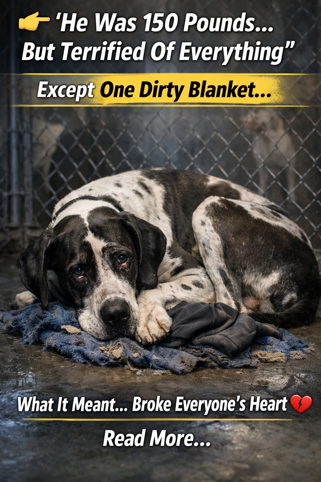I was sitting on that very floor, my back pressed against the chain-link fencing, watching a one-hundred-and-fifty-pound Harlequin Great Dane try to make himself invisible. His name was Titan, though the name felt like a cruel joke now. Great Danes are bred to be majestic, towering figures, canine royalty that command respect just by entering a room. But Titan was nothing but angles and trembling muscle, a colossal architecture of fear.