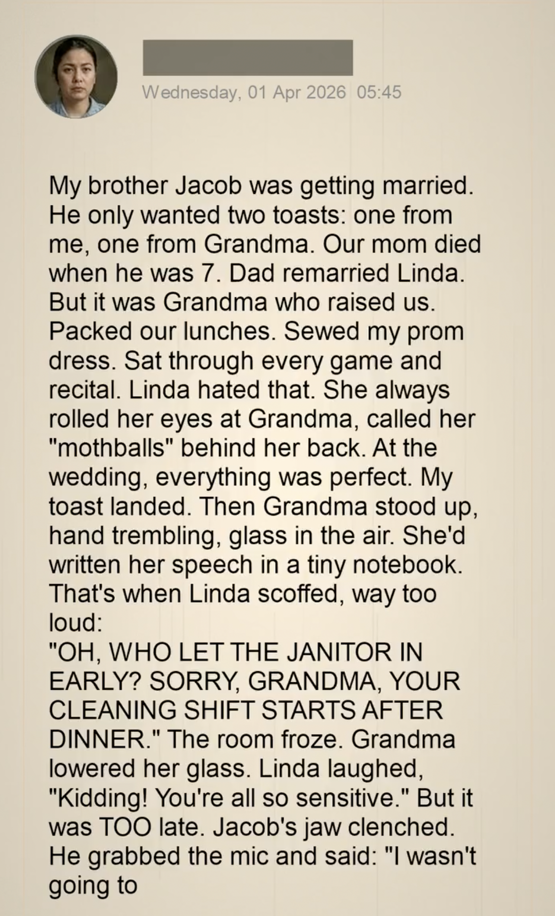 A couple of years after Mom passed, Dad remarried. That’s how Linda entered our lives. At first, her moves were subtle – eye rolls, tiny jabs when Grandma visited – nothing dramatic. But slowly her passive-aggressive habits grew more blatant, especially towards Grandma. It was awkward, but Dad always brushed it off, saying she was “trying.” We saw otherwise.