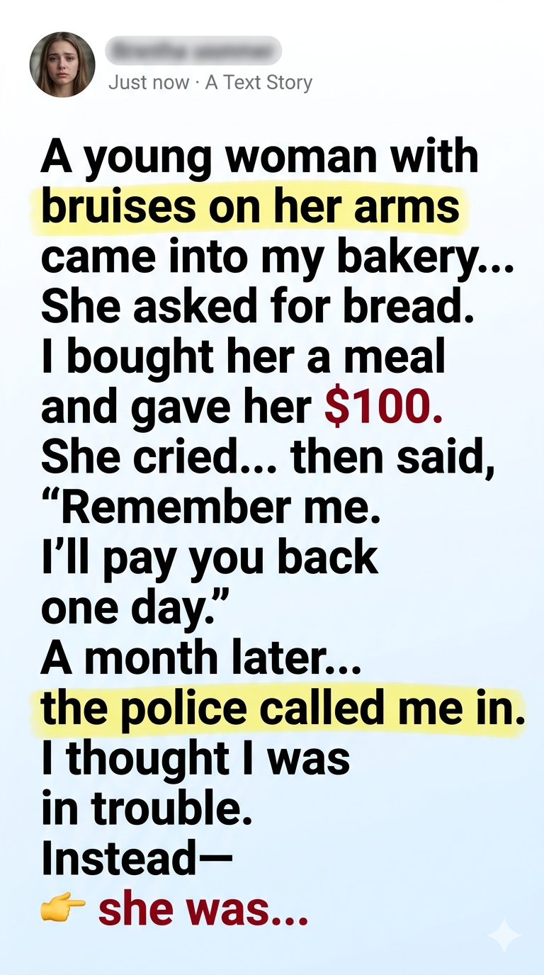 “I kept your $100,” she said, her voice trembling. “Not because I didn’t want to pay you back… but because it was the first time anyone showed me kindness without asking for anything.”